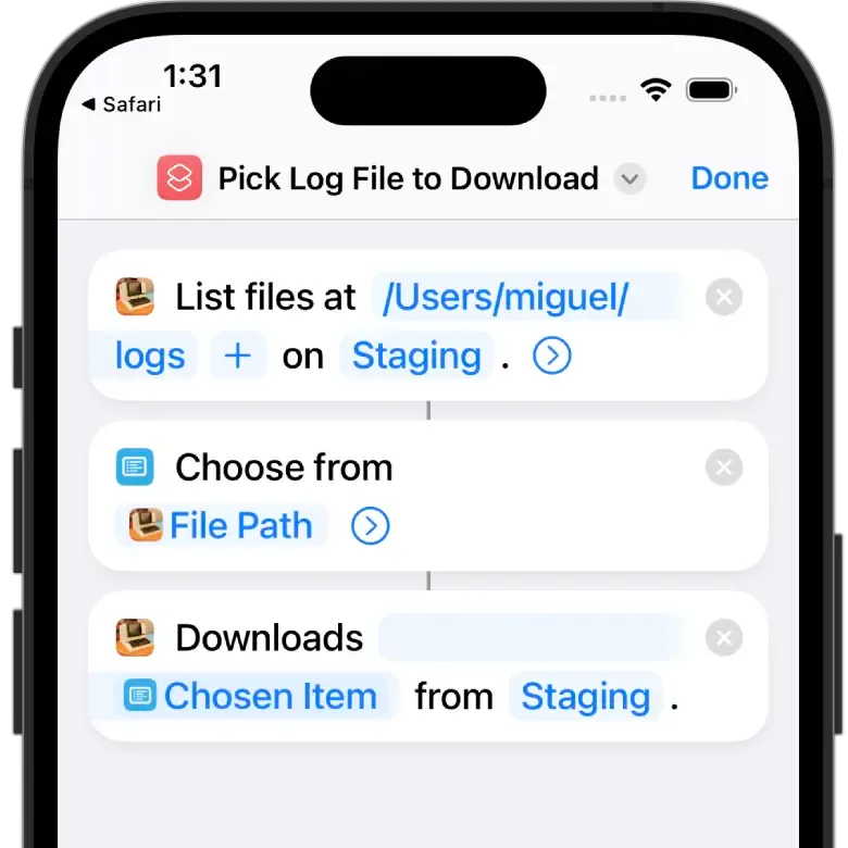 La Terminal now exposes its capabilities to iOS Shortcuts and Siri, so you can write Shortcuts scripts to perform remote file management, execute commands and launch remote processes.