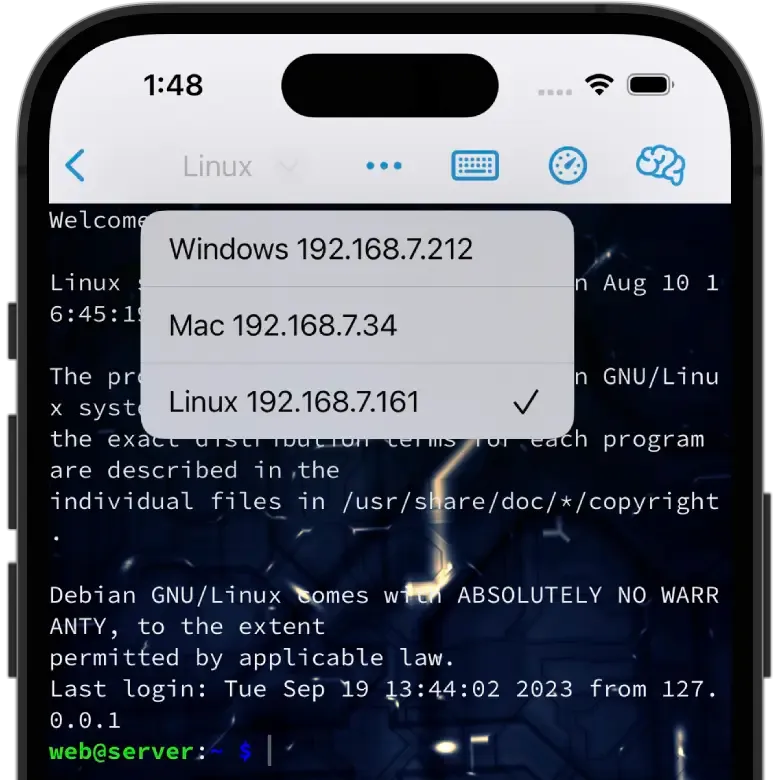 This release also introduces a session selector you can access by tapping on the host name at the top of the screen to navigate to other open sessions.