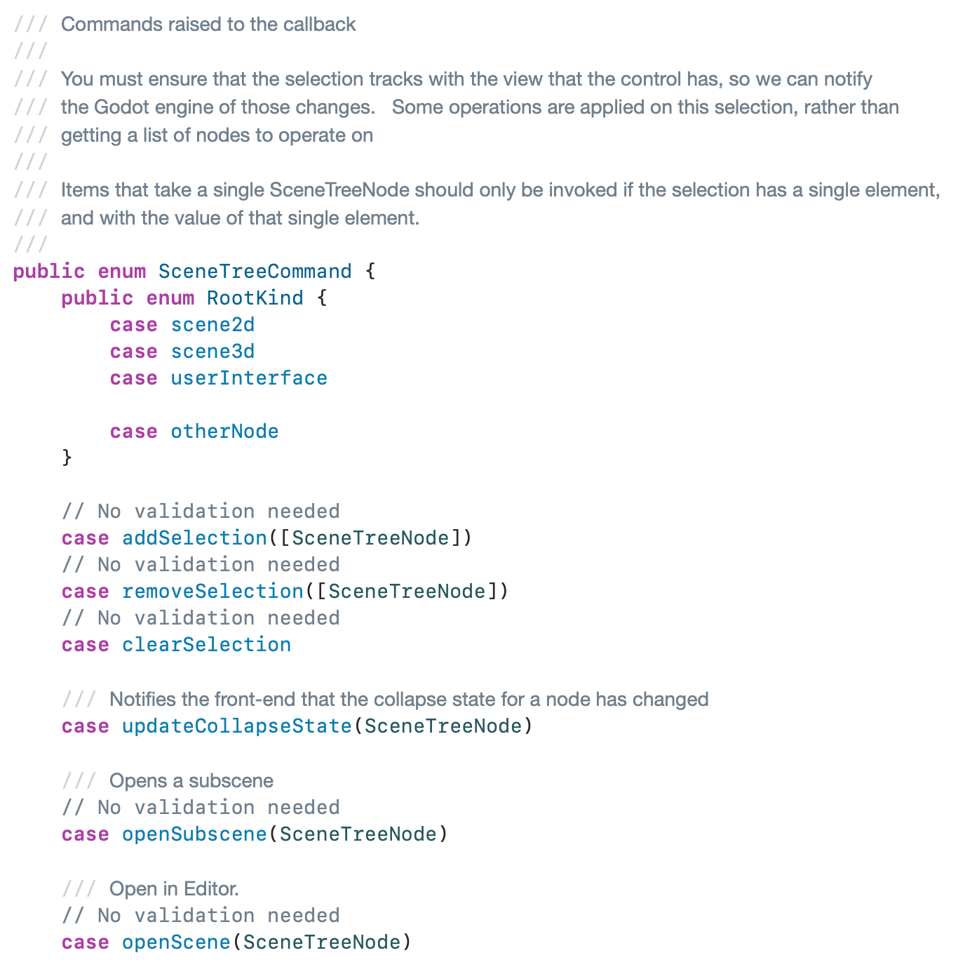 While all this neat data about Godot exists in SwiftGodot, XogotUI can not consume it, as it is a significant dependency. Those of you who know me know that I detest gratuitous abstractions. I avoid them like the plague. But given the above constraints, I made an exception in this case.