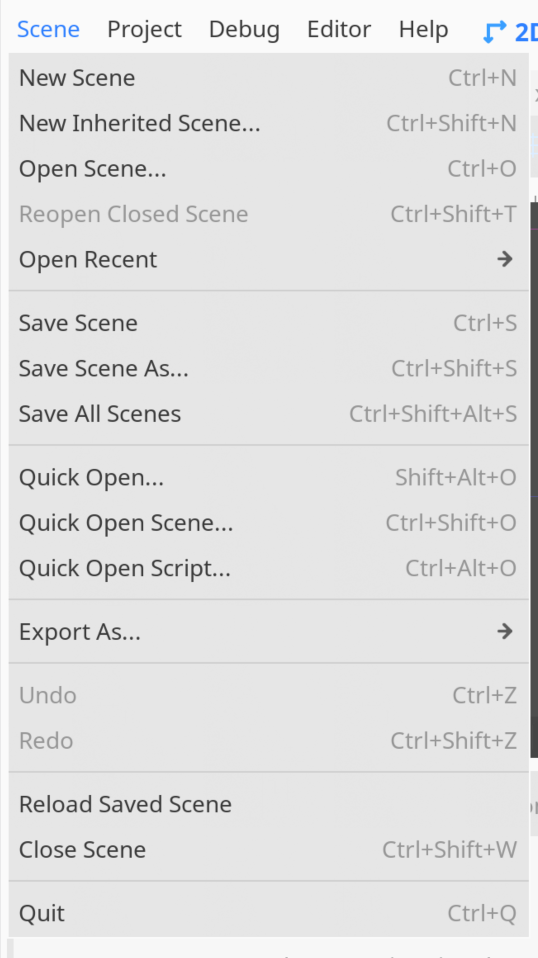 The next victim on my quest to iPad-ificate Godot was the top-level menu. Despite having a slender menu in an industry dominated by uncontrolled menu bloat, on the iPad, this menu still looks like ordering a burrito at a French restaurant.