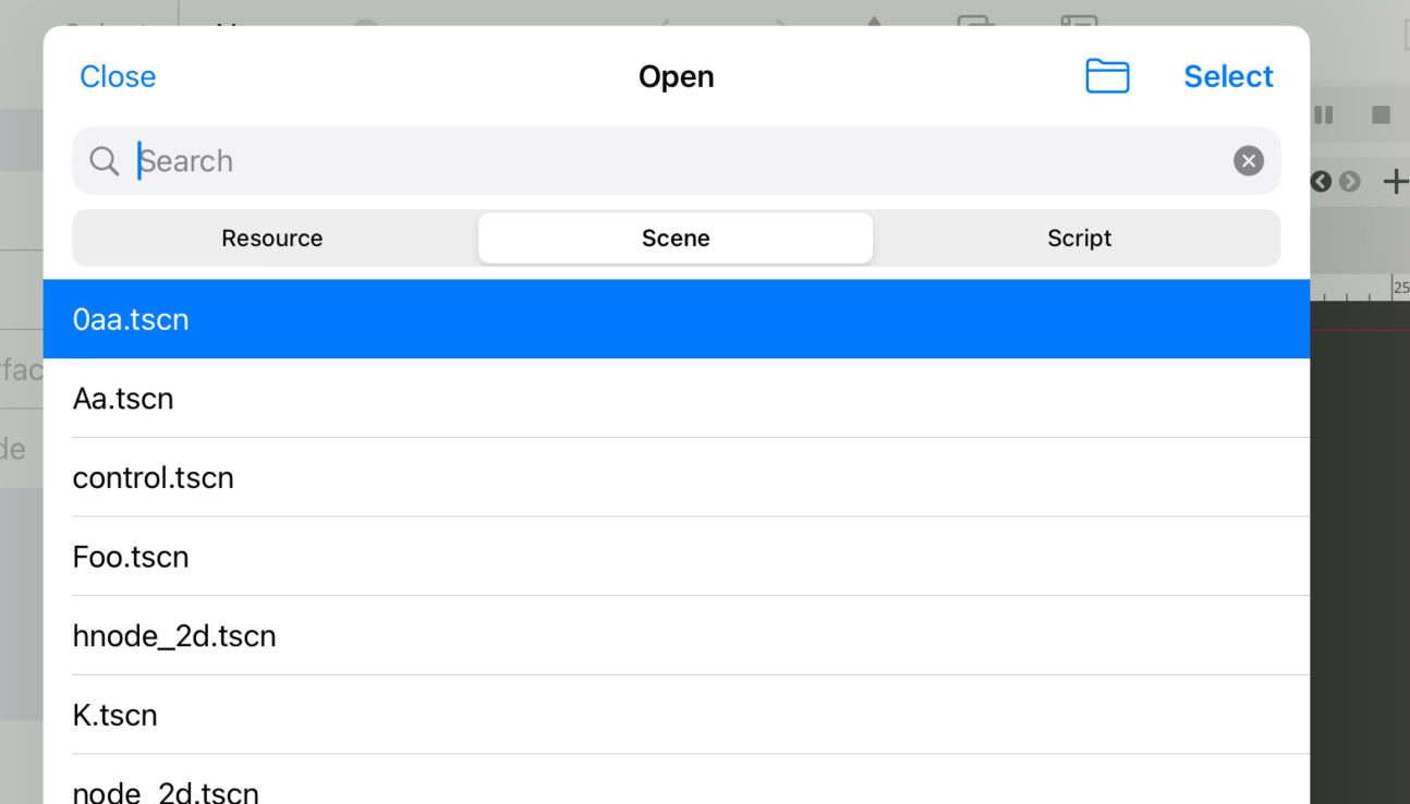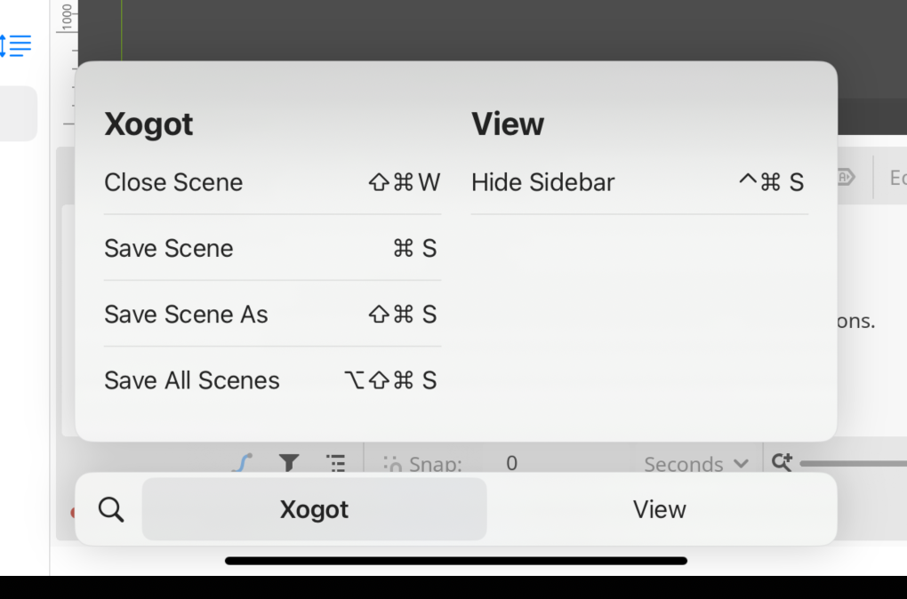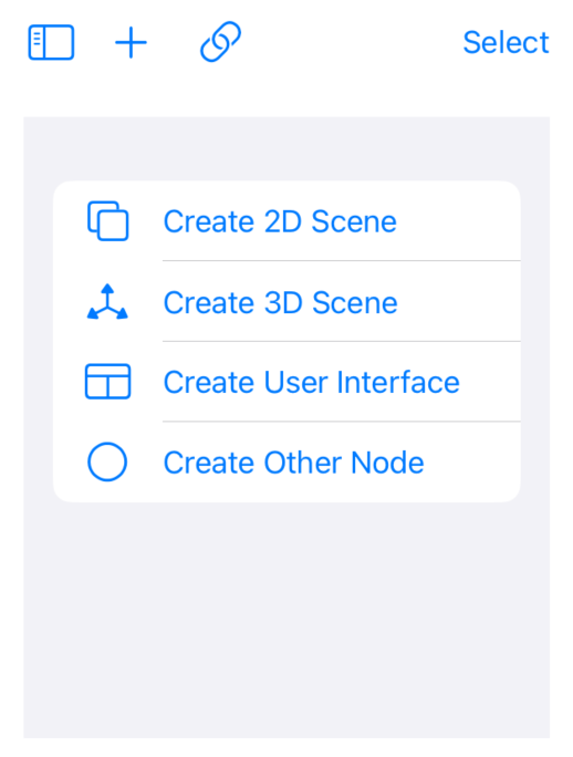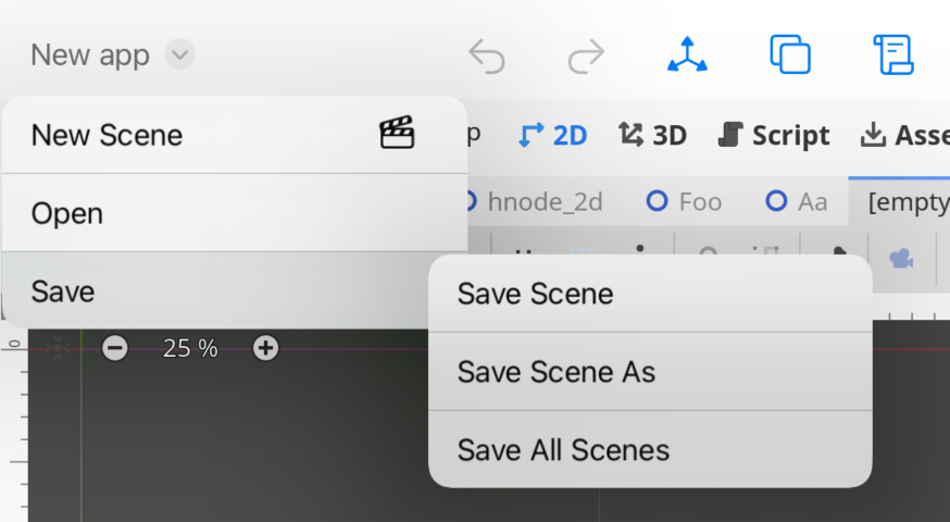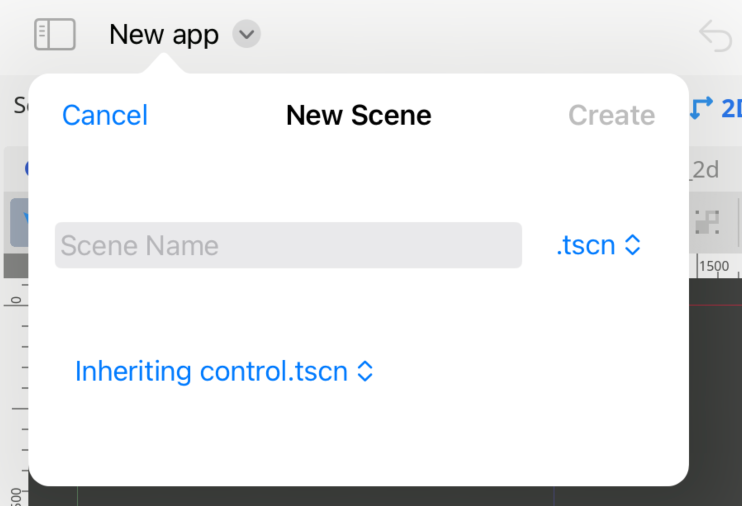 On iPad, it is rare to have an application surface the Save command. The contents should be saved automatically for you. With Godot, things do not work this way. Instead, Scenes in Godot are created in memory, and only when you try to save them do you pick a name for them.