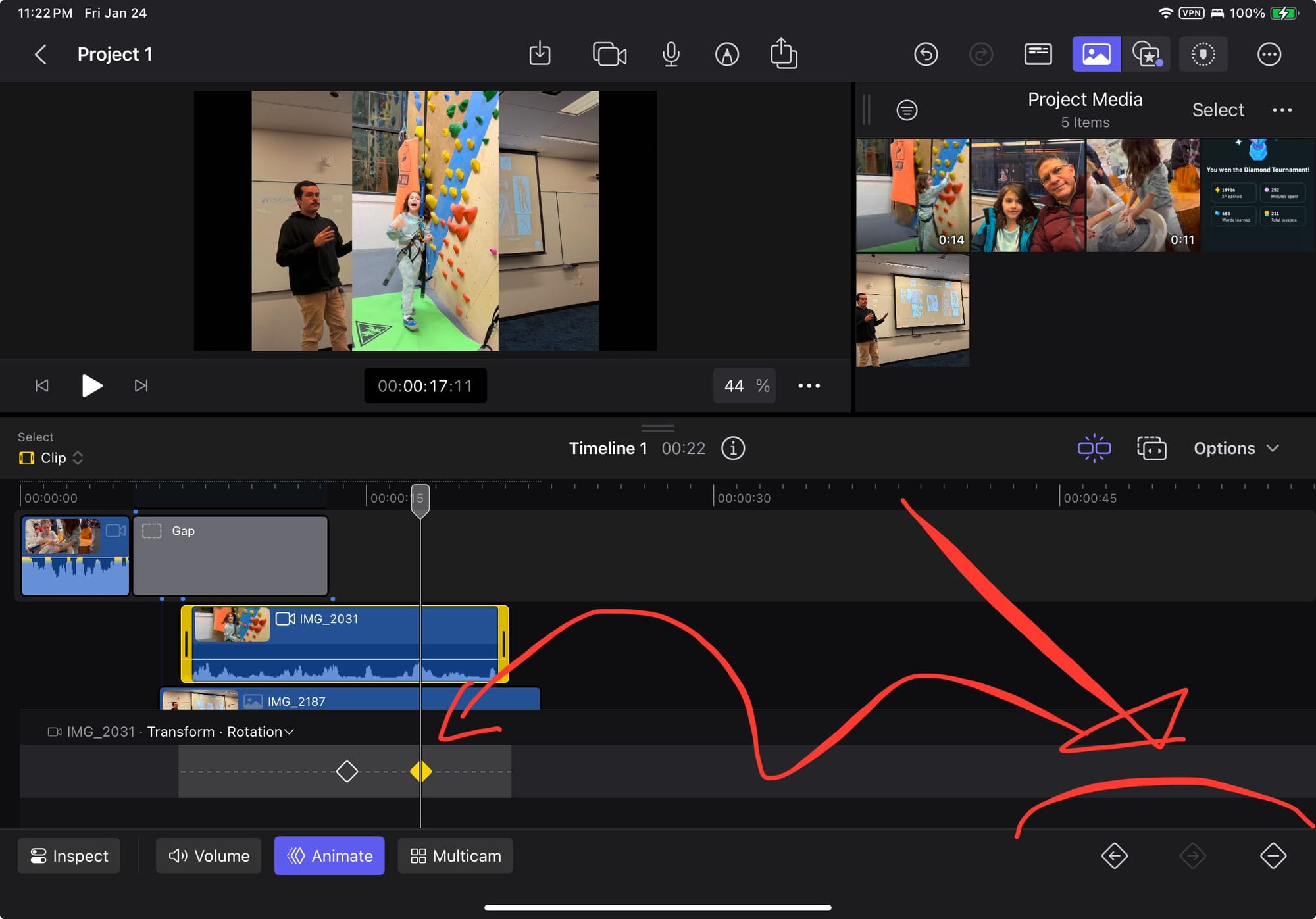 Luckily for me, both Logic Pro and Final Cut Pro feature animation timelines, so I went to look at what they did, and I found Final Cut Pro’s touch interface ideal: